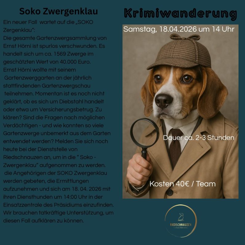 Tauchen Sie ein in die Welt der Detektive und erleben Sie gemeinsam mit Ihrem Hund ein Abenteuer der besonderen Art.